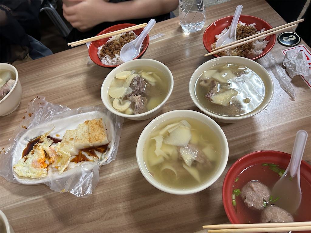 魯肉飯と肉団子スープを注文して待っていると、地元民に話しかけられて奢ってもらった🙌🏻